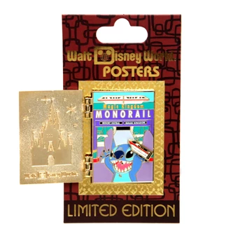 This limited edition pin of the month series features the poster designs from Walt Disney World Resort Resort Attractions. This pin includes the poster of Walt Disney World Resort Monorails which opens to reveal Stitch.