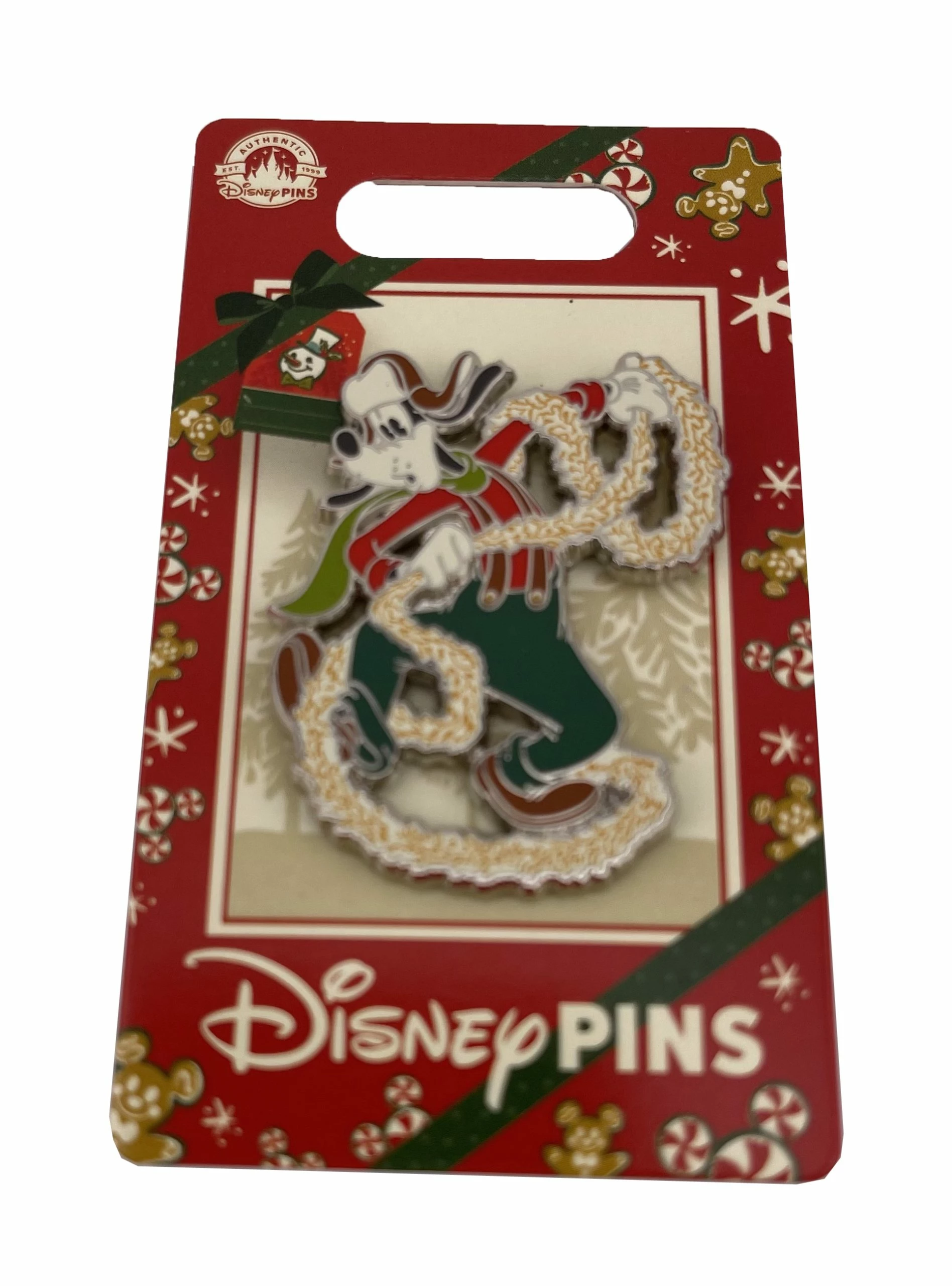 Goofy is decorating for the Holidays on this 2022 Holiday Pin.