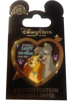 Celebrate Lady and the Tramp’s 60th Anniversary with this heart shaped Lady and the Tramp pin.