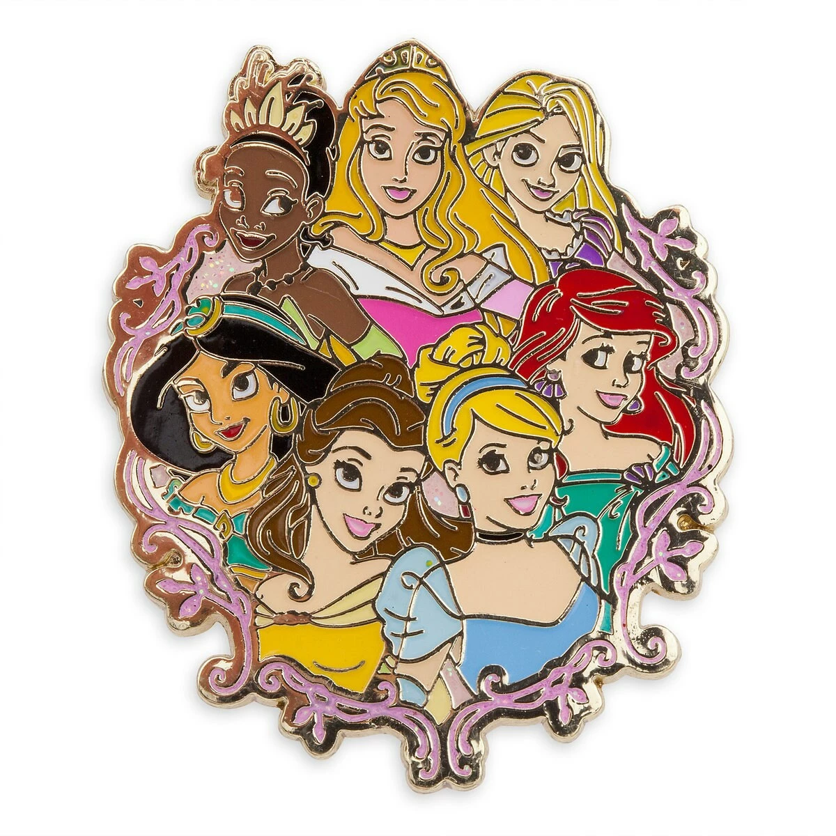 Seven of the Disney Princesses are brought together in one regal pin. The die-cut design features Tiana, Aurora, Rapunzel, Ariel, Cinderella, Belle and Jasmine, making it a fairytale addition to your collection.