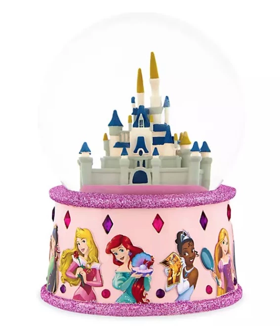 Cinderella, Aurora, Jasmine and the rest of the Disney Princesses add their regal presence to this snowglobe, which also features faceted colorful gem accents around the base. Glitter flies around the Fantasyland Castle within when you shake the globe.