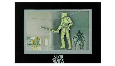 This limited edition jumbo Stormtrooper pin comes with a mini-print. The Stormtrooper’s saber glows in the dark.