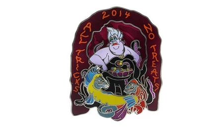 Limited edition 2014 All Tricks, No Treats pin features Ursula. This pin has a pin-on-pin element.