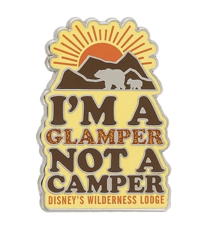 Open edition Wilderness lodge pin. The pin features the wording I’m a Glamper Not a Camper.